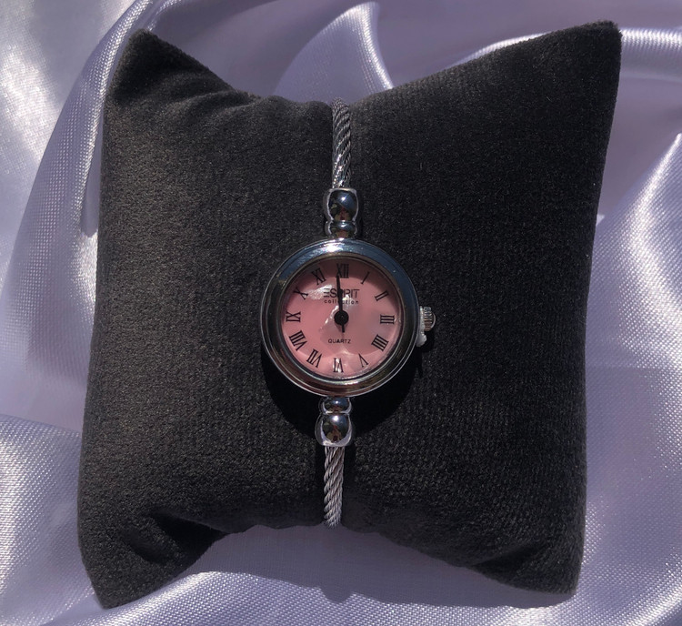 ساعت بنگلی کوآرتز صفحه صورتی نقره ای زنانه